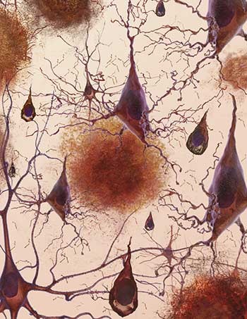 During autopsies of patients who died of various brain diseases, doctors often see clumps or aggregates of proteins in the brains. The protein varies with the disease, but in the case of AD, the protein is called tau. In AD, tau slowly builds up in the brain and causes brain cells called neurons to malfunction and eventually die. The process is not really understood, but tau has become an important target for therapeutics to treat AD.
